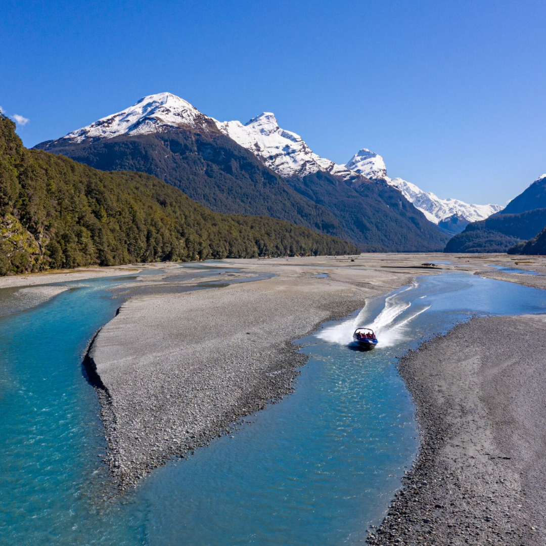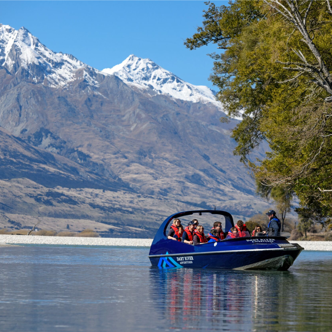 The following day, explore the charming town of Glenorchy, known as the “Gateway to Fiordland National Park”, before jetting down the mighty Dart River on a thrilling Dart River Jet boat tour.