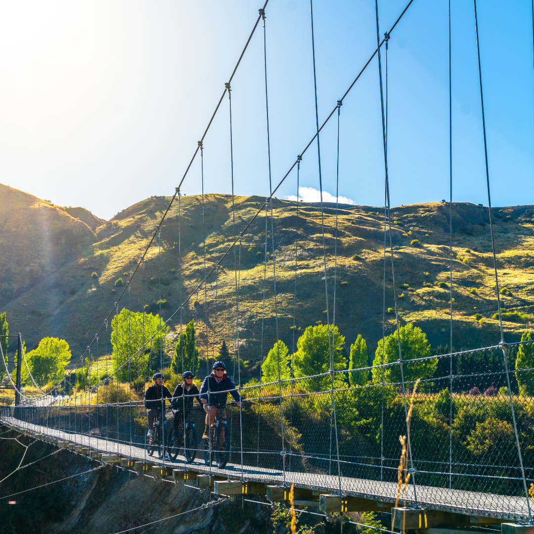 As you ride through the Kawarau Bungy-Jump Bridge, the trail opens up to the majestic Gibbston Wine Valley, where you’ll have time to sample some of the region’s world-class wines at one of the valley’s first cellar doors. After a leisurely afternoon of riding and wine-tasting, return to Queenstown on our shuttle service.