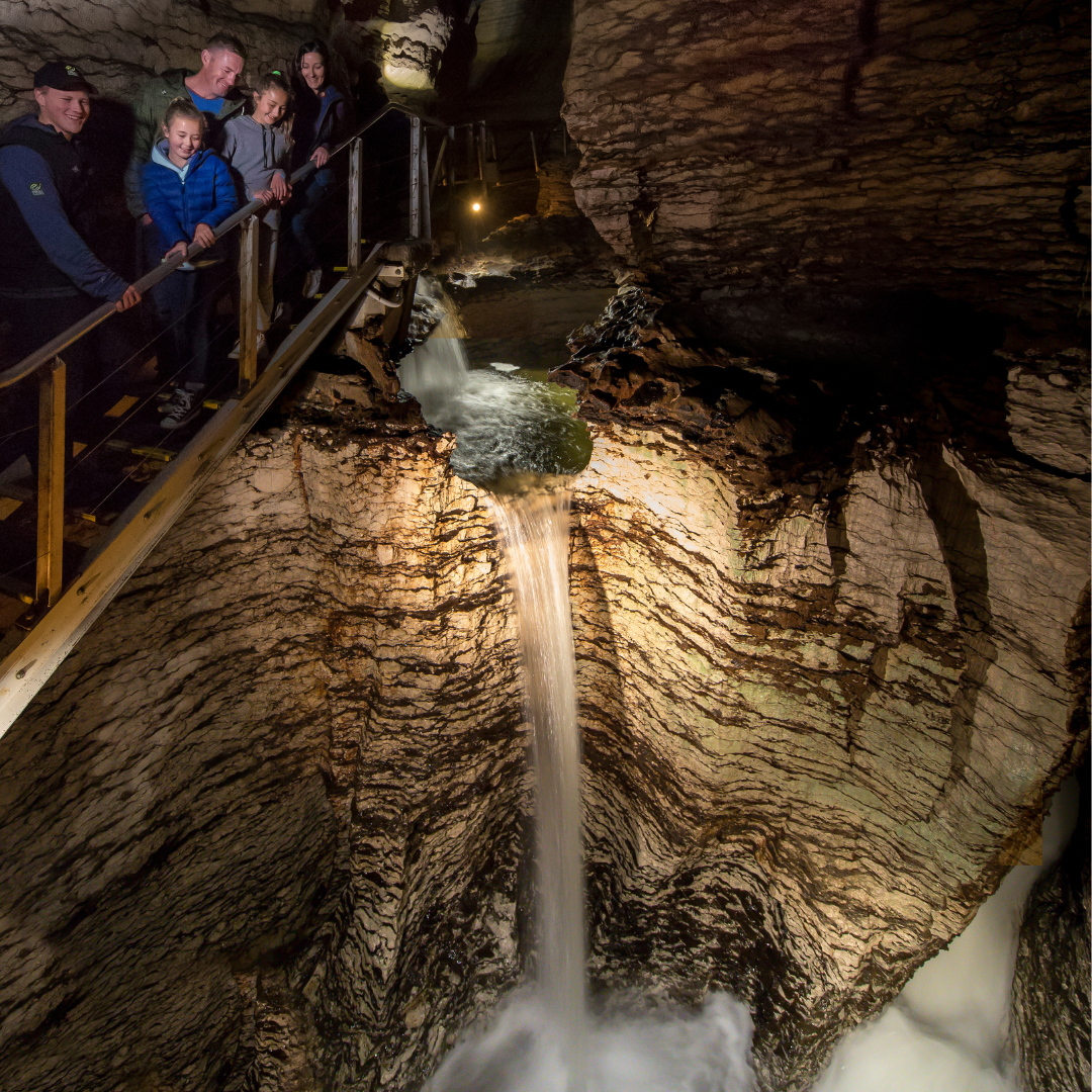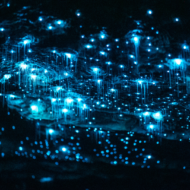 Discover the hidden world beneath New Zealand’s surface on our guided tour. You’ll travel through limestone passages, across whirlpools, and a thundering underground waterfall before entering a serene glowworm grotto, home to hundreds of these unique creatures.
