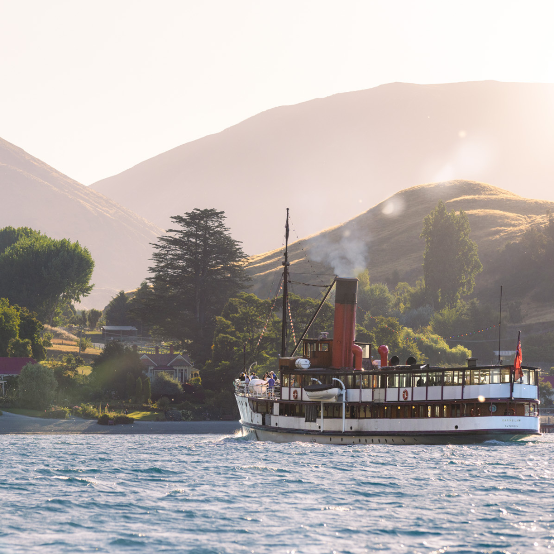 Step aboard the TSS Earnslaw, New Zealand’s most iconic boat, and embark on a 90-minute journey through Queenstown’s rich history. As you cruise across Lake Whakatipu, you’ll be treated to breathtaking views of the surrounding alpine scenery. Take a peek into the engine room and marvel at the century-old steam engines in action. Nearby, explore the mini-museum, featuring historic photographs, or relax with a drink or meal at the Promenade Café and Bar.