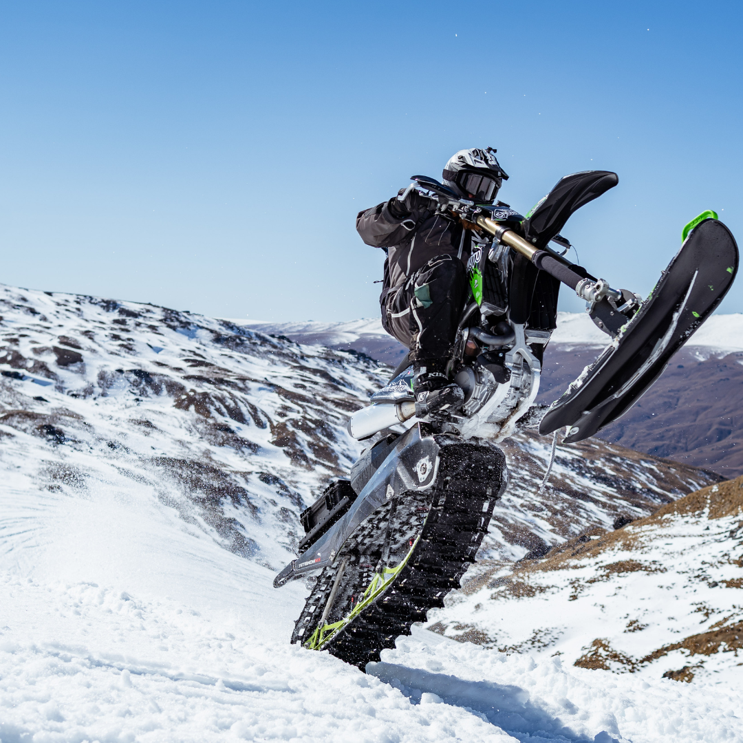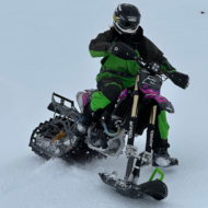 Think 450cc dirt bike, add in a track and ski, put yourself on snow covered slopes and let loose. That’s Snowmoto!