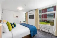 Facilities include ensuite bathroom, premium comfort king size bed, kitchenette with microwave & fridge, small 2 seater table, tea and coffee facilities, air conditioning, free car park and wifi.