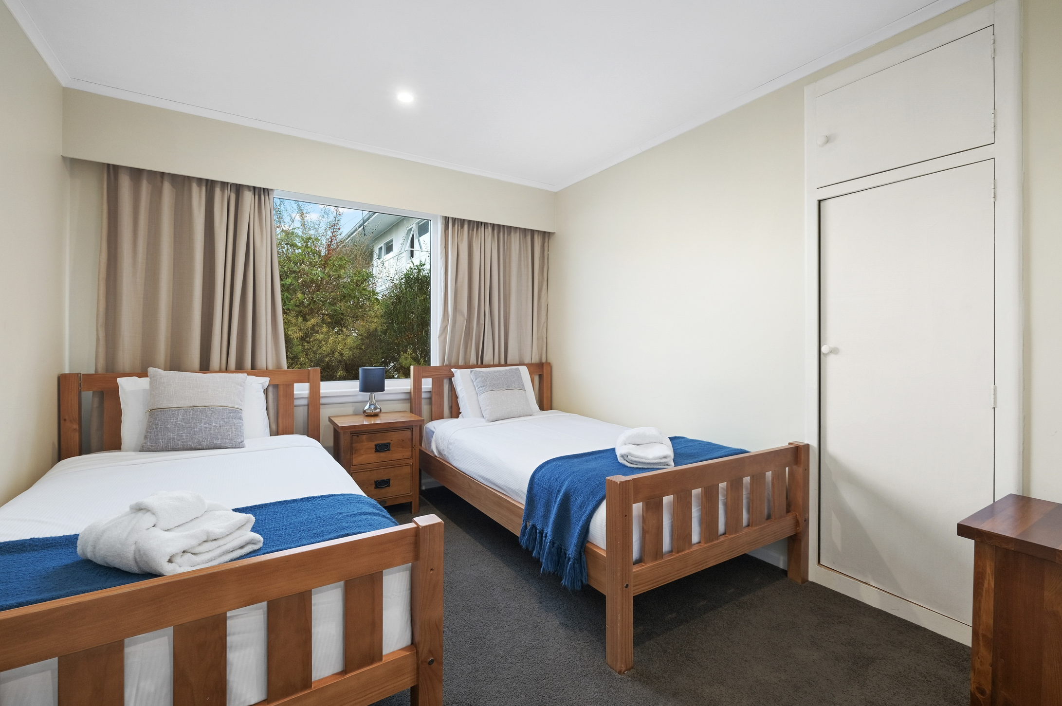 Our home is large and spacious, with an open plan and high ceilings in the living areas. Our home has three very comfortable bedrooms…a perfect holiday retreat for families or three couples.