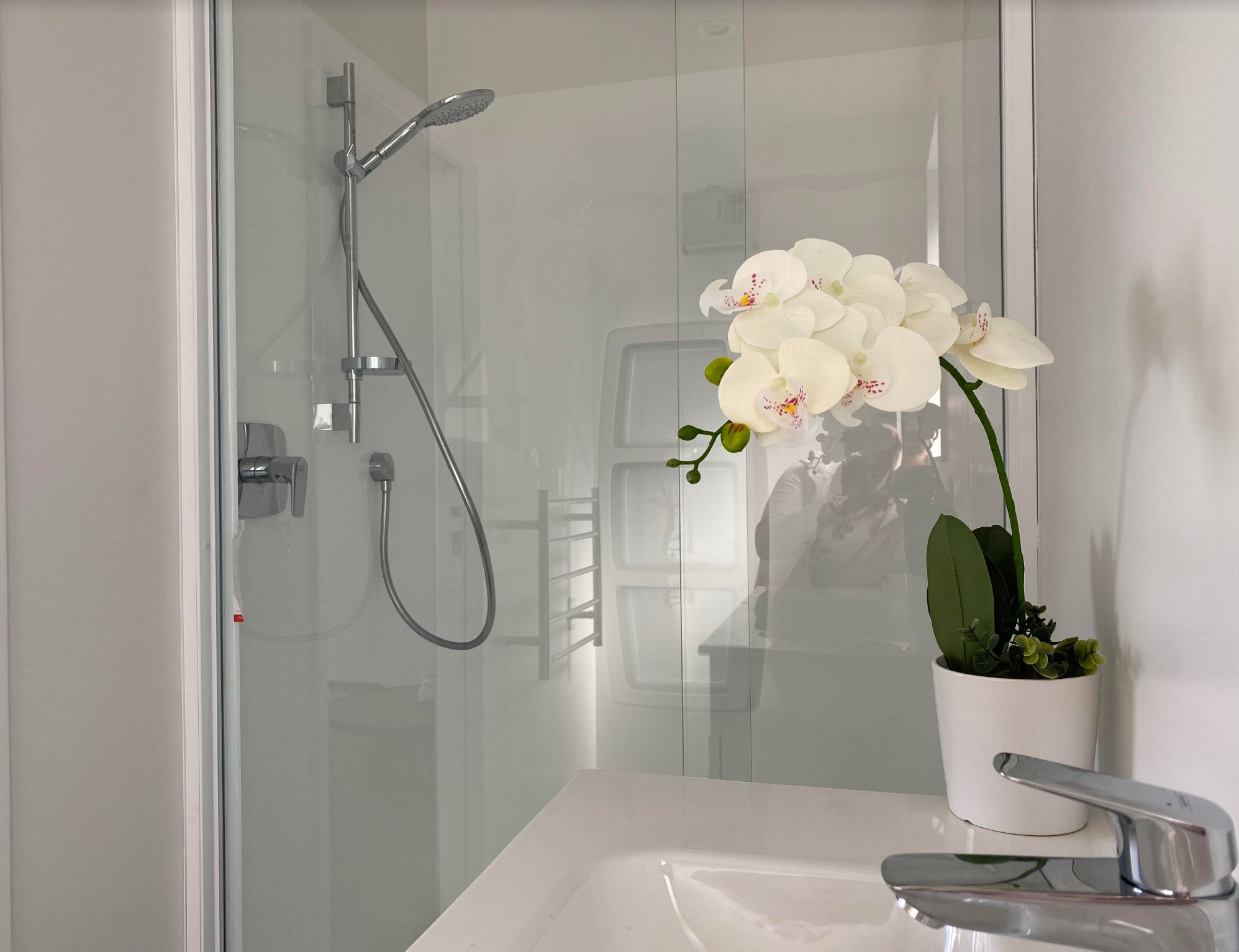 Our home is brand new (Dec 2022) and is very modern. It’s cozy, yet feels very spacious with two generous bedrooms and super king beds, both of which can be split into singles… so you can have four separate single beds, or two singles and a super king bed, or two super king beds.