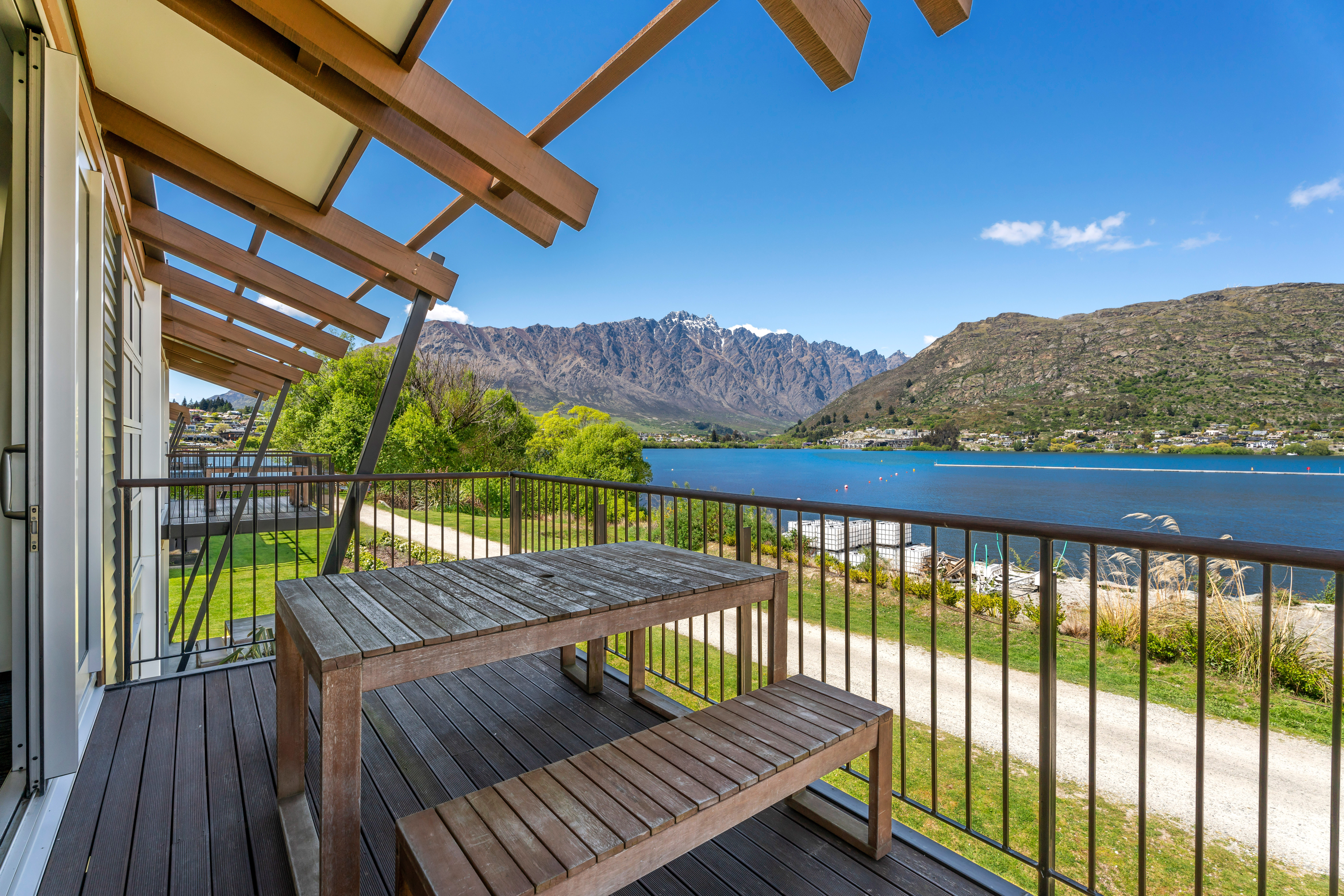 Summary Stylish, spacious, modern 3 bedroom premium apartment situated on the ground floor right on the lakefront in the Marina complex. Walk in/out access to the lakeside. Fabulous lake and mountain views, including from the spacious living and dining areas. Fully equipped modern kitchen and laundry. Three ensuite bathrooms. Airconditioned. Free car parking, free WiFi . Queenstown’s walking and cycle trail, lake and beaches are right on the doorstep.