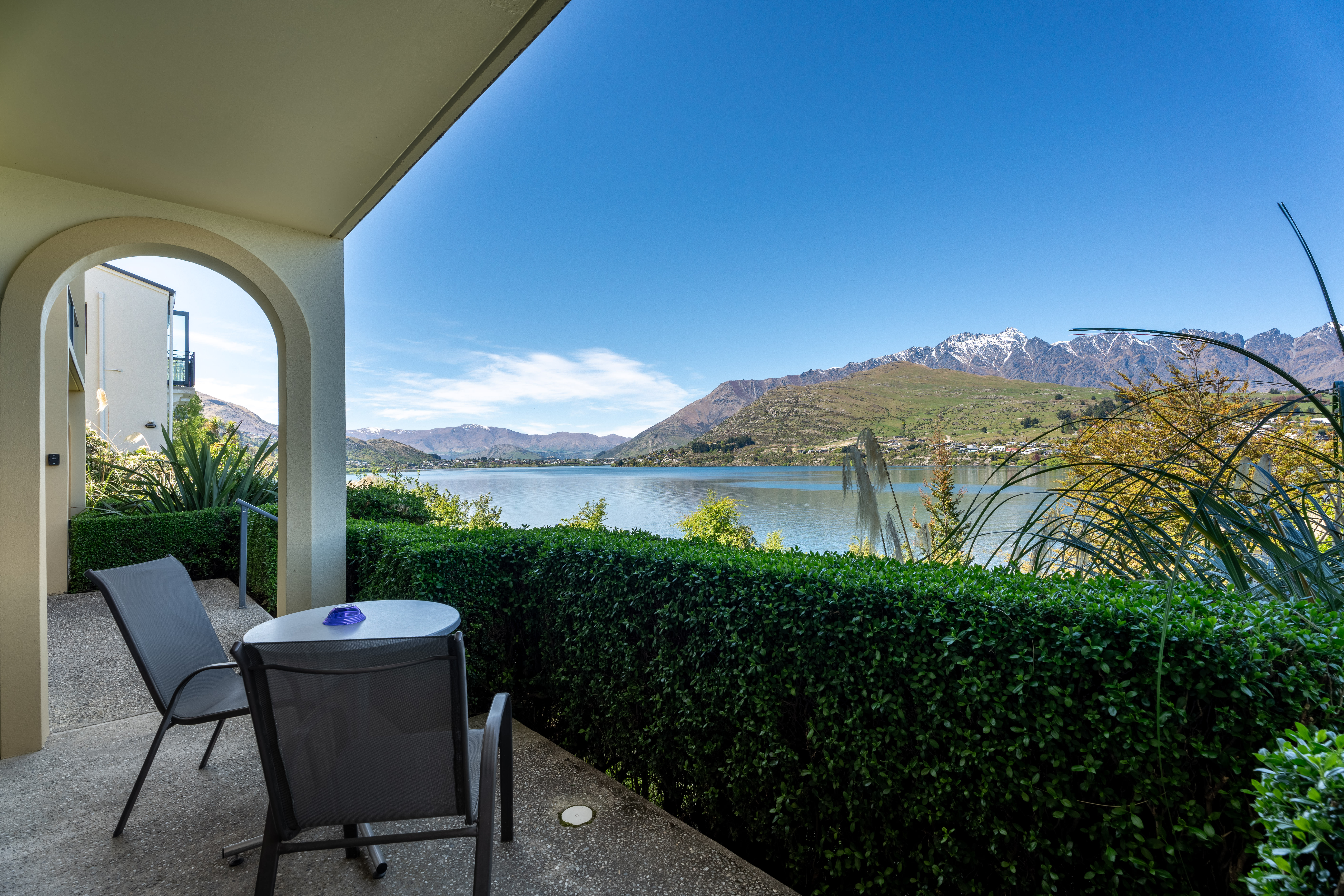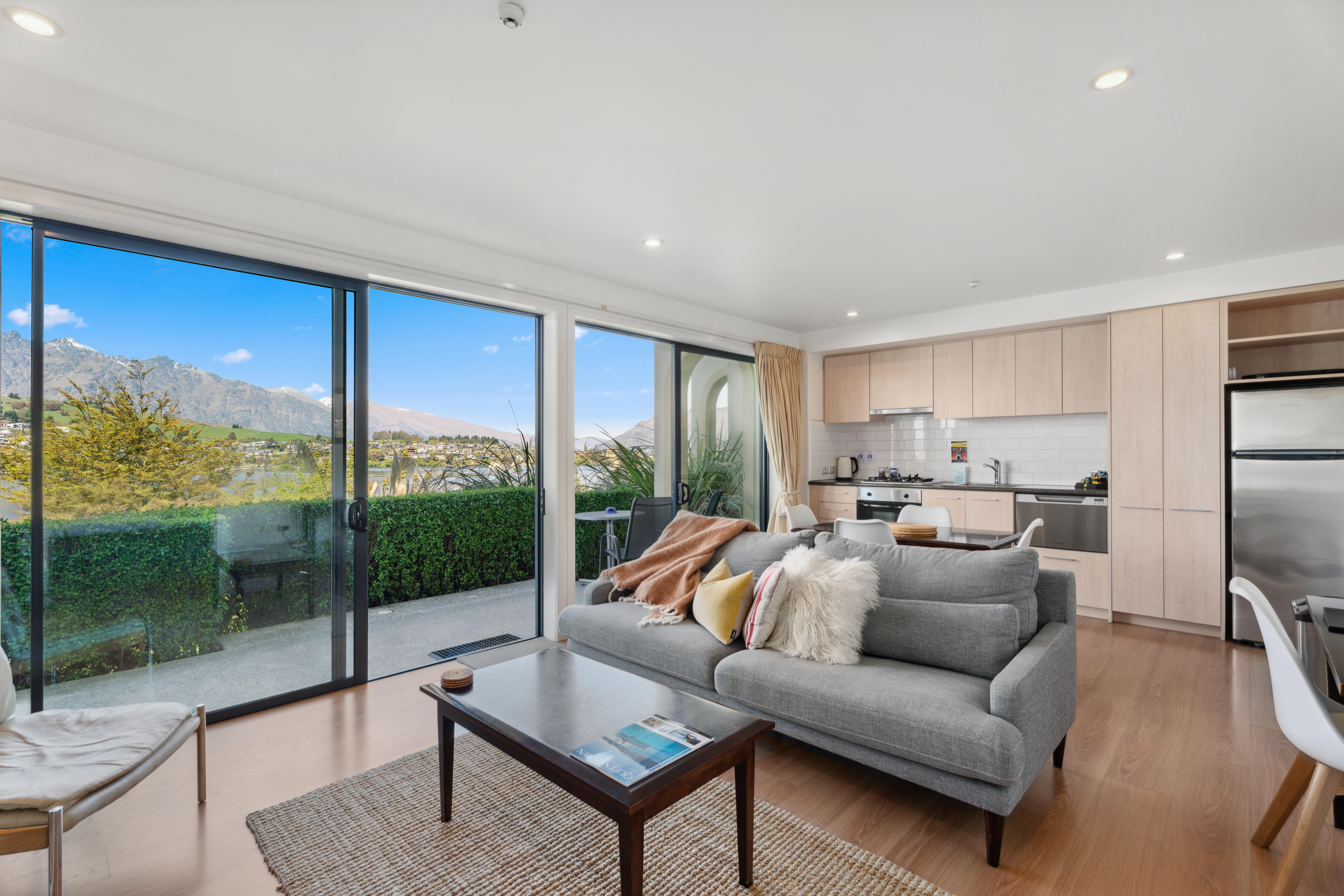 Summary Beautiful, tranquil, one bedroom suite set in a spectacular and peaceful location right on the lakefront. With floor to ceiling glass windows across the whole front of the apartment, you can relax and enjoy the full majestic lake and mountain view. Fully equipped with kitchen, bathroom, laundry and living/dining room. Includes cosy gas fire and private patio. Stair access from the car park to the apartment. Stair access to the lake.